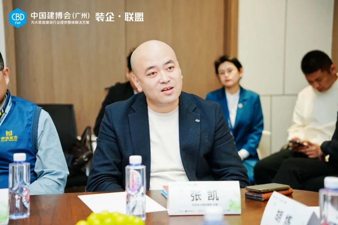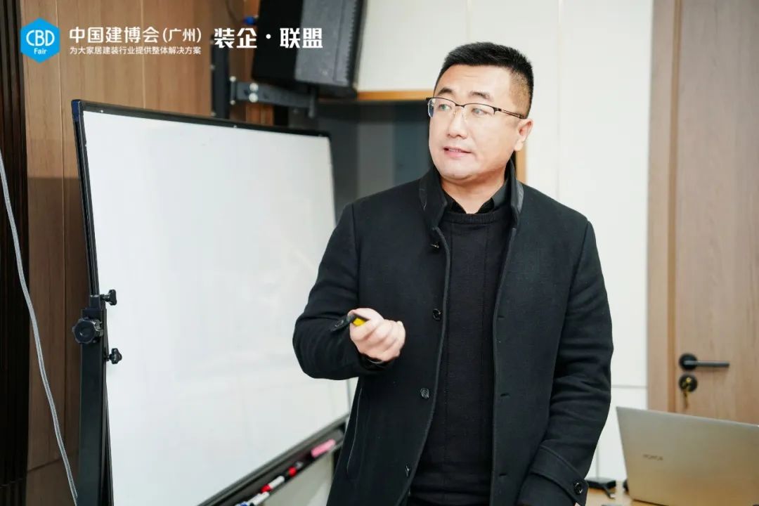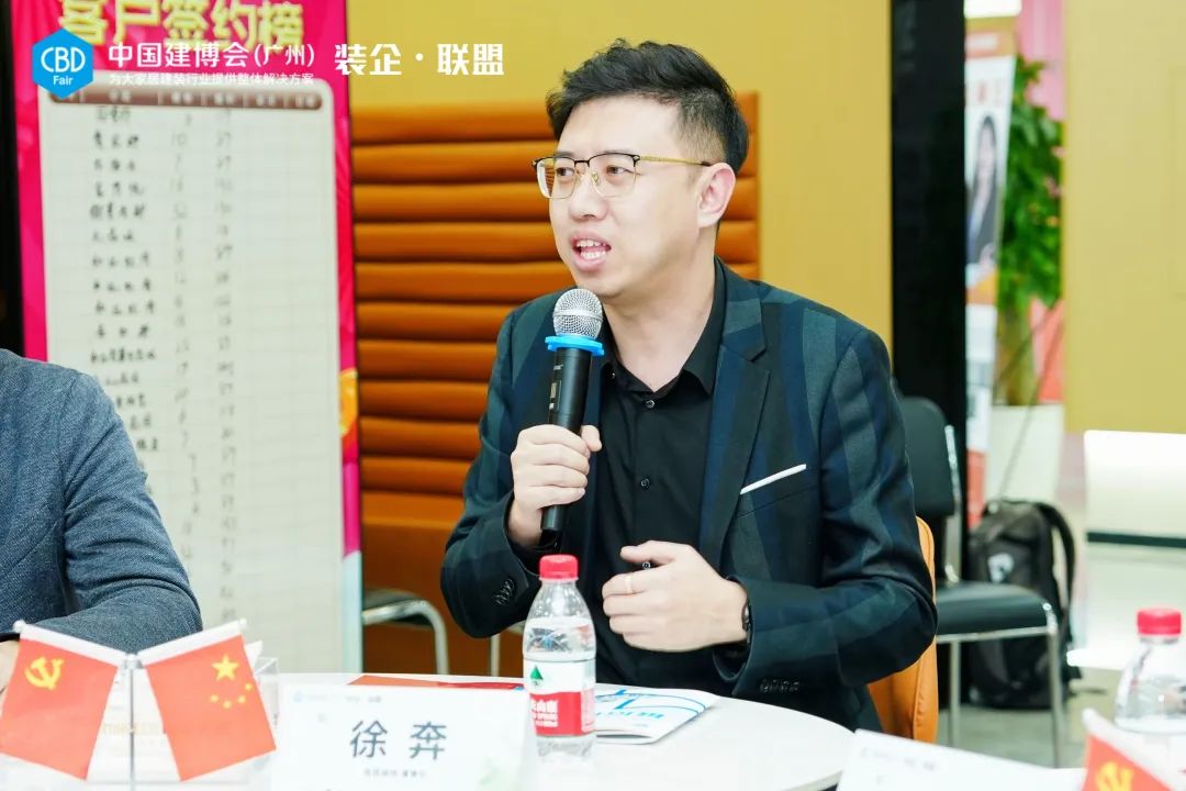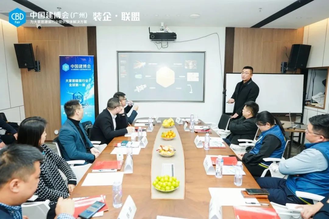 铭筑装饰董事长徐奔热情接待了“装企•联盟”参访团队。他表示,欢迎更多供应链优质企业走进铭筑装饰,通过深度参观和恳谈,有利于打开行业新认知,从而加速上下游间的实效整合。同时徐奔总提到,通过中国建博会(广州)“装企•联盟”的平台,能了解更多的品牌和对于行业发展有助益的新产品,是非常有意义的,希望双方未来有更多的合作机会和链接。