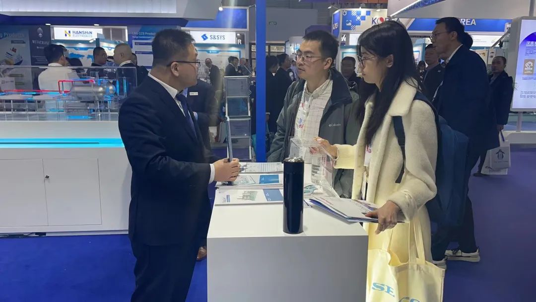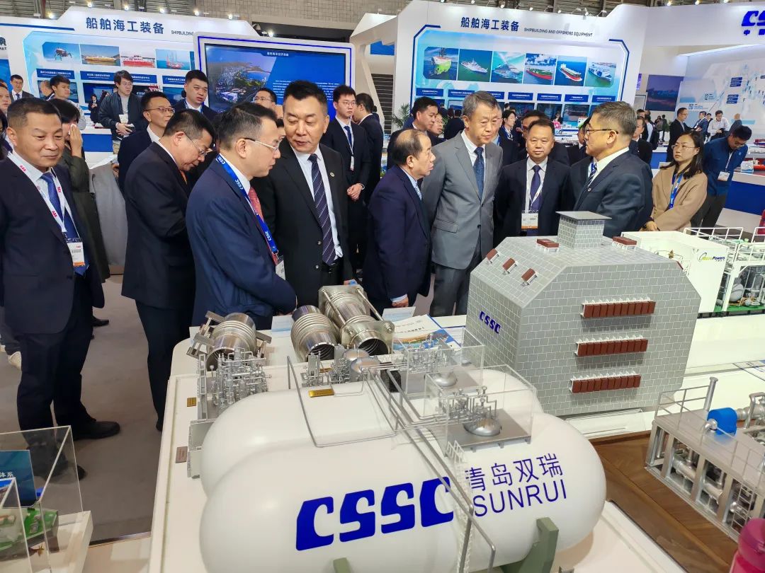 12月5日,第二十一届中国国际海事会展在上海盛大开幕,中国船舶集团董事长、党组书记温刚,副总经理、党组成员孙伟、盛纪纲在巡馆过程中到访七二五所展位。七二五所所长王其红带队参加本届海事会展,副所长徐健参加并出席了青岛双瑞氨燃料供应系统新品发布会、北海造船等客户的重大签约仪式。