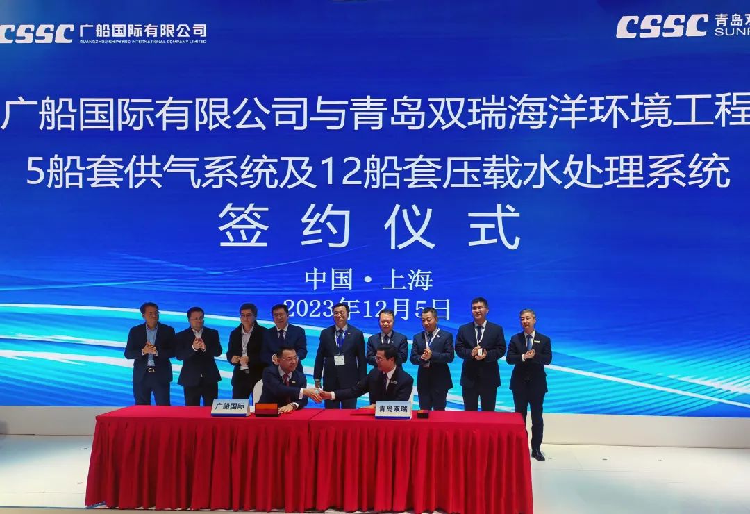 展会期间,七二五所参与并组织了多项重大活动。青岛双瑞在集团公司展位隆重举行GasLink®船用氨燃料供应系统新品发布会;举行了与广船国际5船套供气系统及12船套压载水处理系统的签约仪式;与大船集团6艘15000TEU甲醇燃料供气系统的签约仪式;与北海造船签订了全球首发的氨燃料供气系统8台套。王其红、徐健以及来自全球主要船东、船厂、船级社、航运研究机构的百余位业界人士现场见证了发布会及签约仪式。