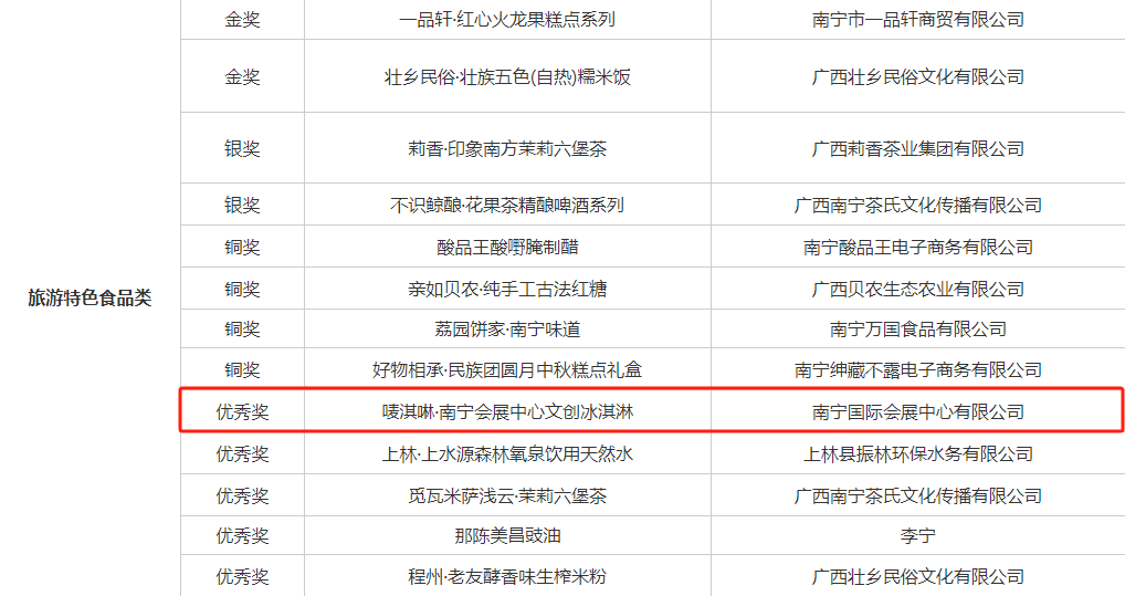 2023年“南宁礼物”旅游特色食品类优秀奖