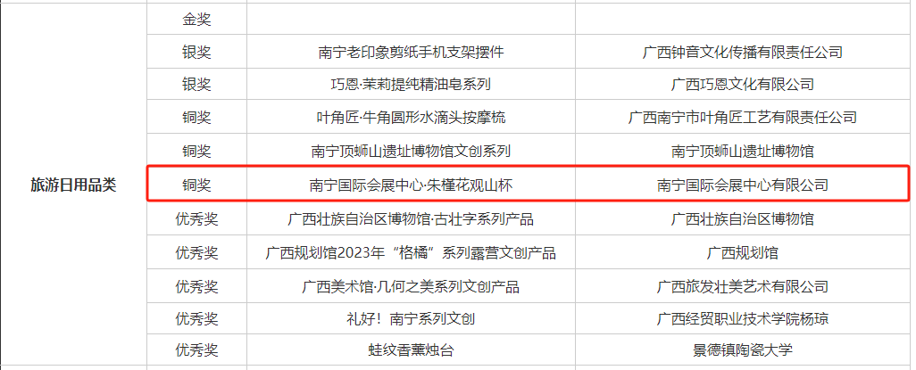 2023年“南宁礼物”旅游日用品类铜奖、南宁十大邕城好礼