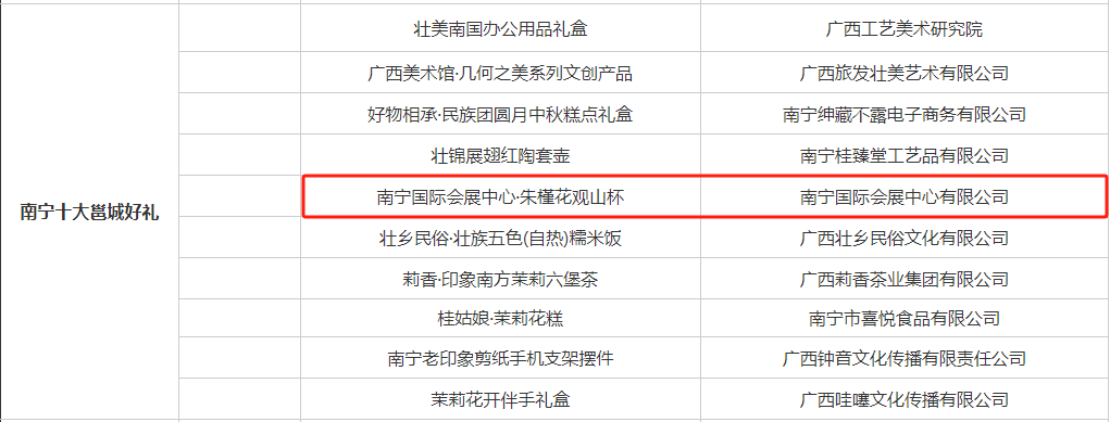 “南宁礼物”征集大赛获奖名单