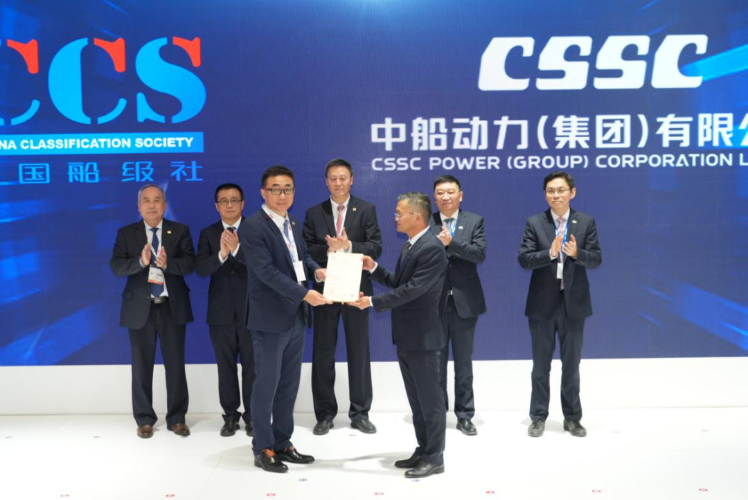 中国船级社向中船动力集团颁发6M320DM-PFI中速甲醇双燃料发动机AIP原理认可证书