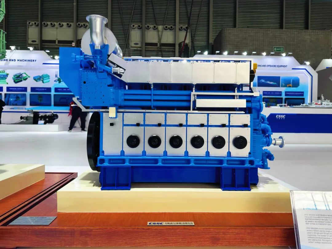 CPGC 6M320DM marine methanol dual-fuel medium-speed engine, the cylinder bore is 320mm, the stroke is 420mm and the single-cylinder power is 500kW. The engine is a green engine launched by CPGC to implement the national "dual carbon" strategic requirements, respond to maritime greenhouse gas emission.