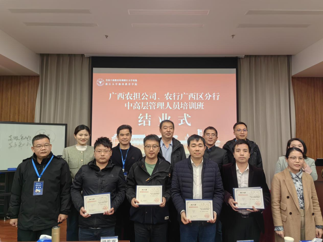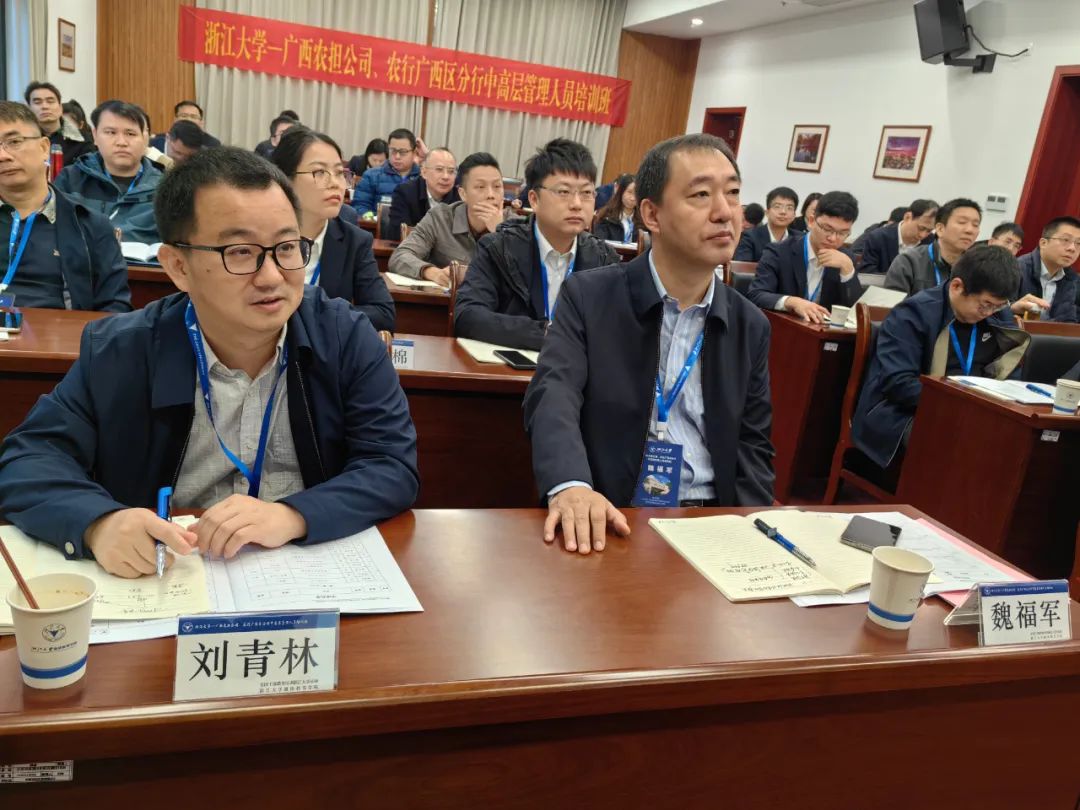 为进一步提升中高层管理人员的战略思维、创新能力和领导能力,深化银担合作,11月20日至11月24日,广西农担公司在浙江大学举办中高层管理培训班,培训邀请了农行广西区分行参加,广西农担公司中层以上管理人员,农业银行区分行农户金融部,各二级分行三农、金融条线管理部门和相关支行负责人、部门业务骨干参加培训。