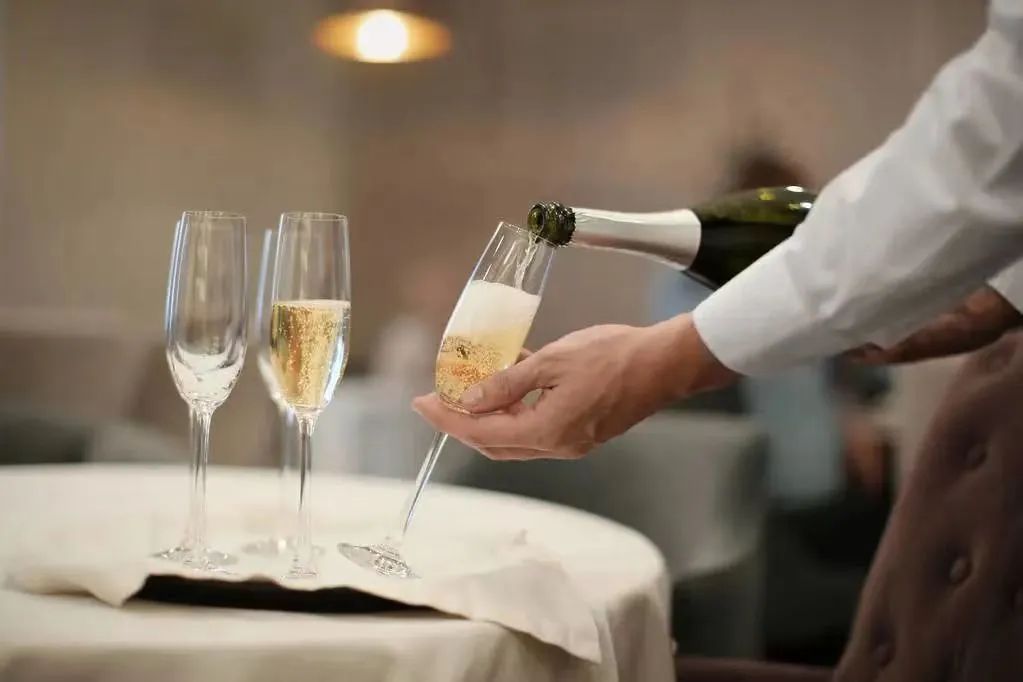 起泡葡萄酒:经密闭二次发酵产生二氧化碳,在20℃时二氧化碳的压力大于或等于0.35MPa的葡萄酒。如香槟就是起泡酒的一种。