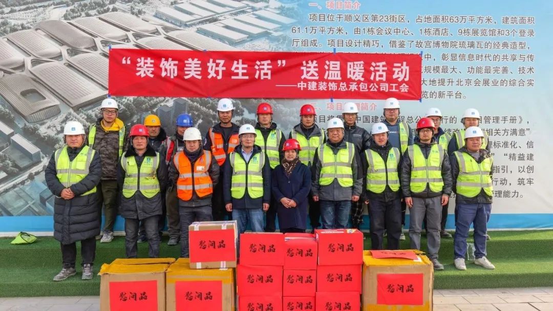 秋去冬来,寒意来袭,为保障冬季外装工程连续施工,维护广大一线职工的劳动安全和健康权益,12月5日,公司党委副书记、纪委书记、工会主席张利娟赴国家会展中心二期项目开展”冬送温暖”慰问活动,为奋战在一线的工作人员送去保暖三件套等慰问品。