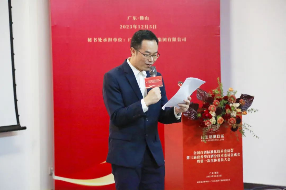 全国白酒标准化技术委员会秘书长宋全厚在会上致辞,对长期以来支持和关心白酒标委会和豉香型白酒分委会工作的委员表示感谢,对新当选的委员表示祝贺。并分别从“加强分委会能力建设、推动豉香型白酒标准体系建设、加强豉香型白酒标准化基础研究、凝聚力量做标准”等几大方面,对新一届分委会提出具体工作建议。