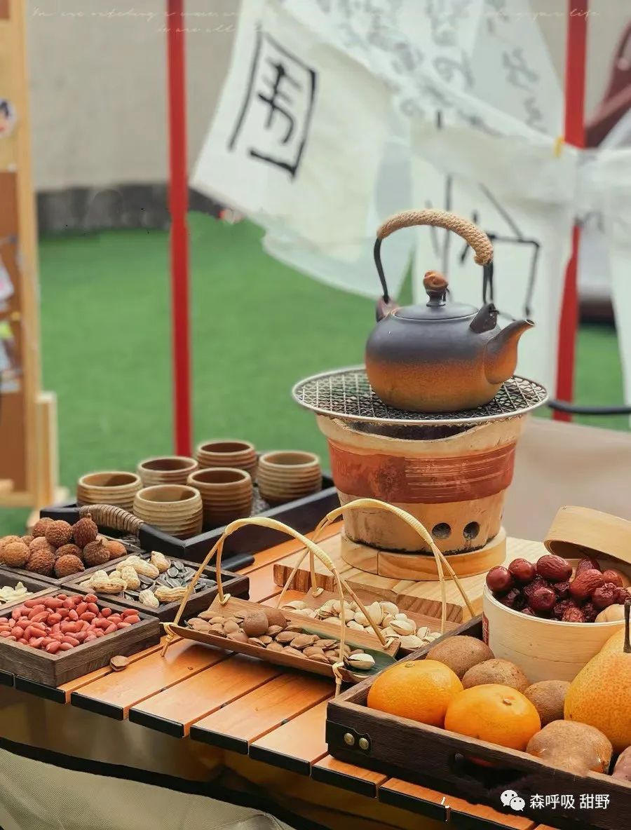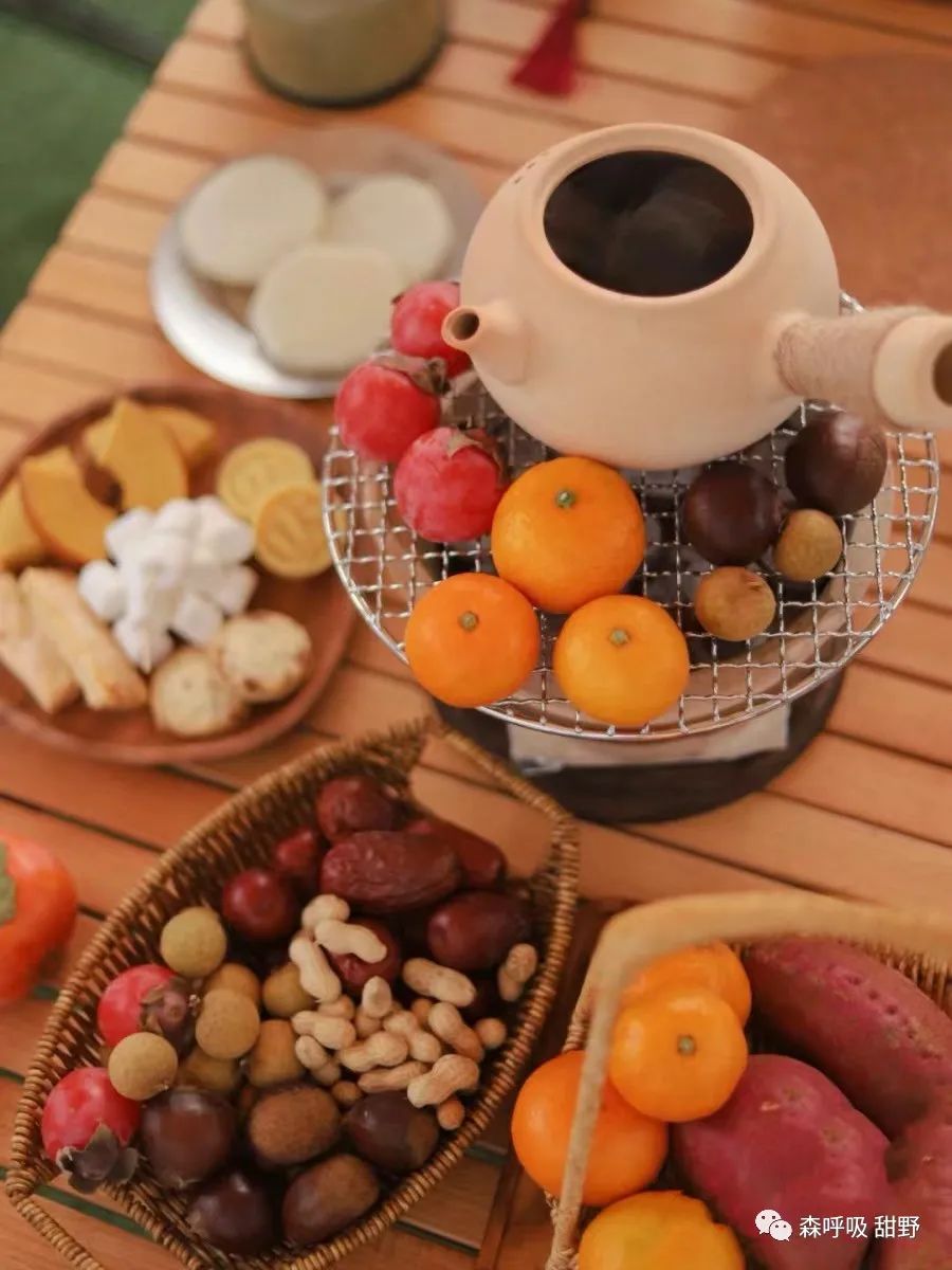 入冬的仪式感,自然少不了围炉煮茶,一家人围坐在一起,烤红薯、栗子、橘子、棉花糖。