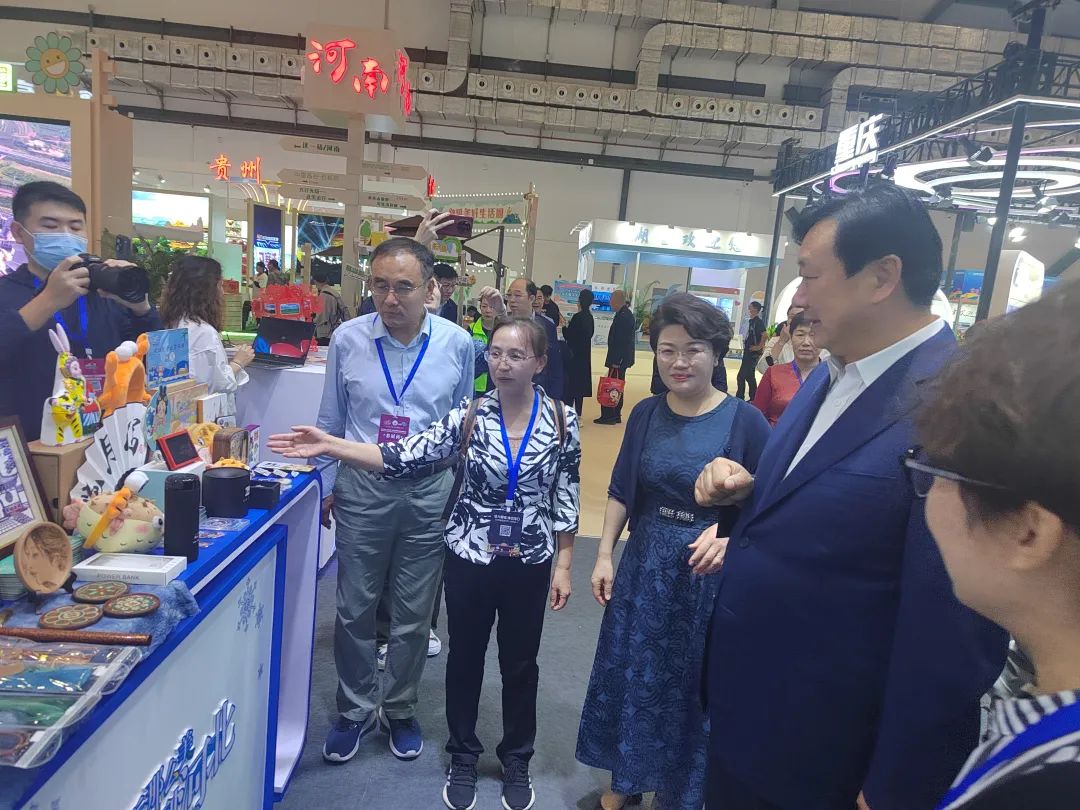 ▲中共河北省委宣传部副部长,河北省文化和旅游厅党组书记、厅长张才,河北省文化和旅游厅党组成员、副厅长王荣丽驻足展台进行指导。