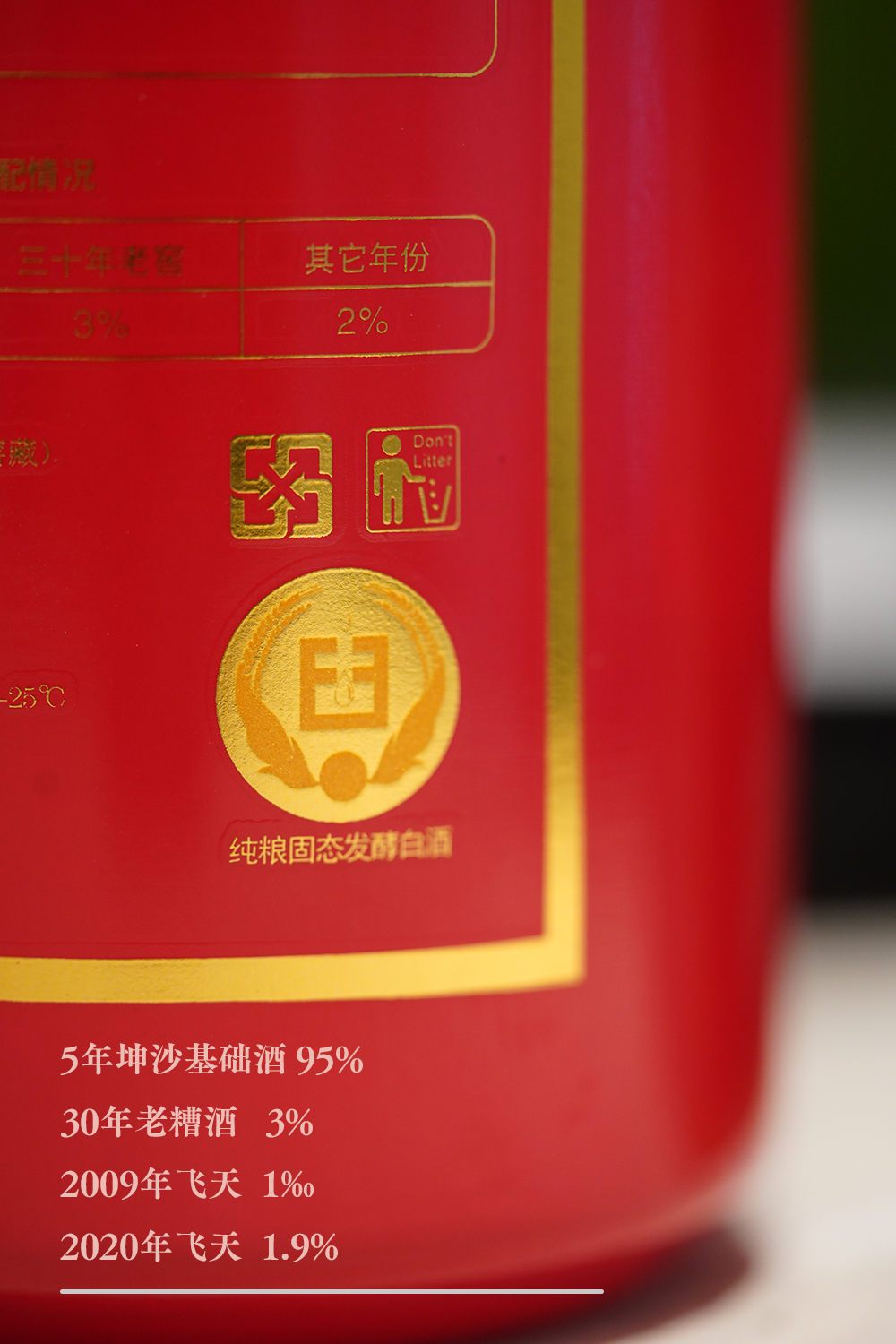 5年坤沙基础酒 95%,30年老糟酒 3%,2009年飞天 1‰,2020年飞天 1.9%。【真实调酒记录】