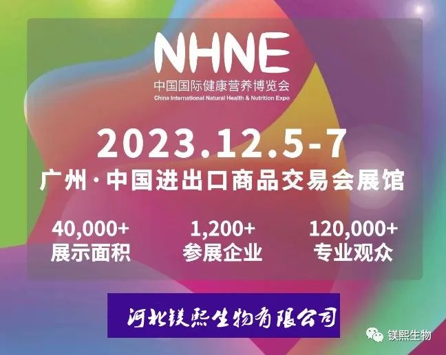 12月5日,NHNE中国国际健康营养博览会&全国药品交易会在中国进出口商品交易会展馆(广州)盛大开幕。河北镁熙生物有限公司受邀参加,以卓越的产品品质和独特的创新理念,引领健康营养新潮流。