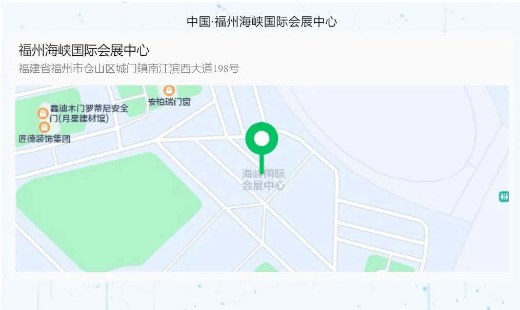 福州海峡国际会展中心位于福州市仓山区,北邻闽江东西两侧分别与福州市两个重要跨江通道一林浦大桥 (魁浦大桥)、鼓山大桥为邻。是国内唯一坐落在自贸区内的大型会展中心,占地67万平方米,总建筑面积44万平方米,由会议中心连接两侧展馆组成,气势恢宏、造型独特,是国内单体面积最大的展馆之一。