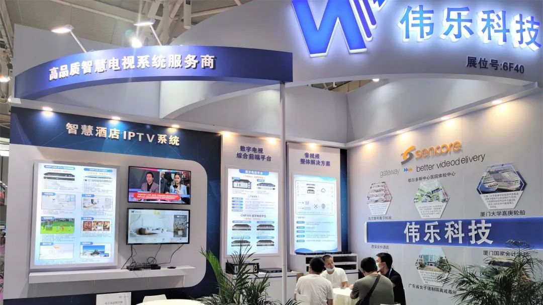 伟乐科技展台包含三个产品展示区,分别是智慧酒店IPTV系统体验区、数字电视综合前端平台展示区、音视频整体解决方案展示区。其中,针对酒店实际需求及机场、医院等各类应用场景推出定制化酒店互动电视系统解决方案获得了现场同行业人士的广泛认可和好评。