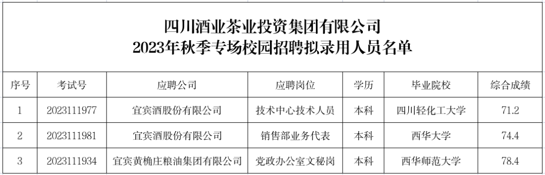2023年秋季专场校园招聘拟录用人员名单