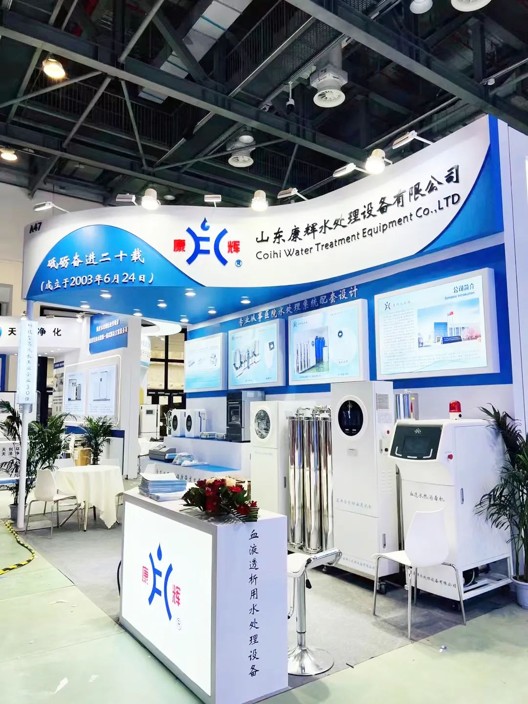 康辉水处理自主研发的血透水处理设备及配套检测仪系列产品在本届展会收到广泛关注