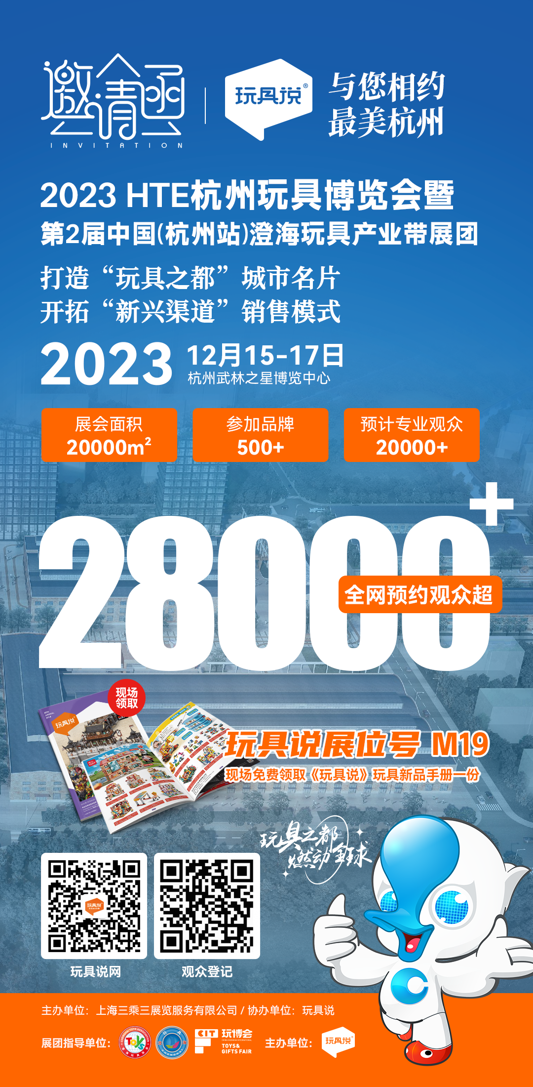 HTE 2023杭州玩具展压轴登场!作为2023年收官之作,我们带着两百余玩具厂家与您相约杭州武林之星博览中心。玩具新渠道探索大会即将开启。期待您的光临!