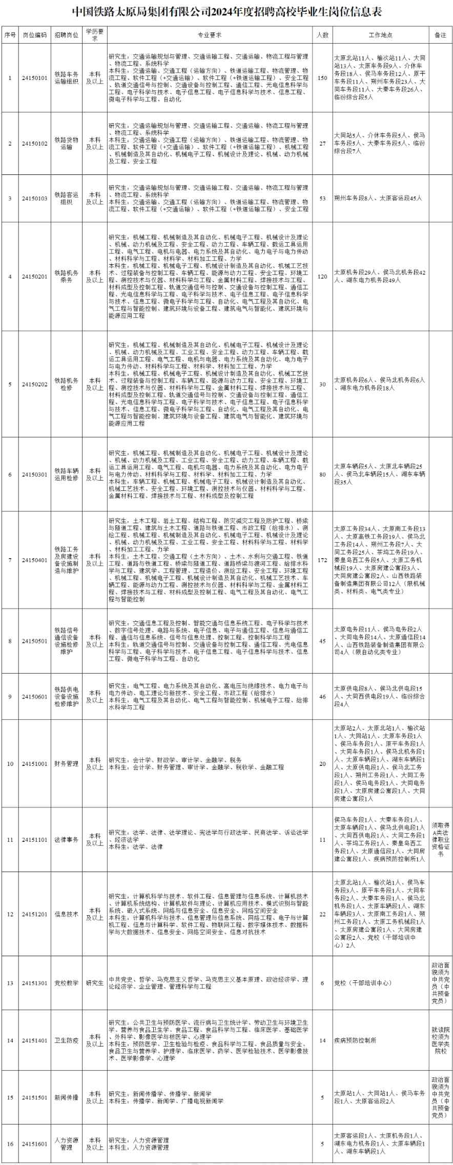 中国铁路太原局集团有限公司2024年招聘高校毕业生公告(一)发布,简历投递时间:2023年11月28日至2024年1月15日,华兴教育为各位考生提供公告原文如下: