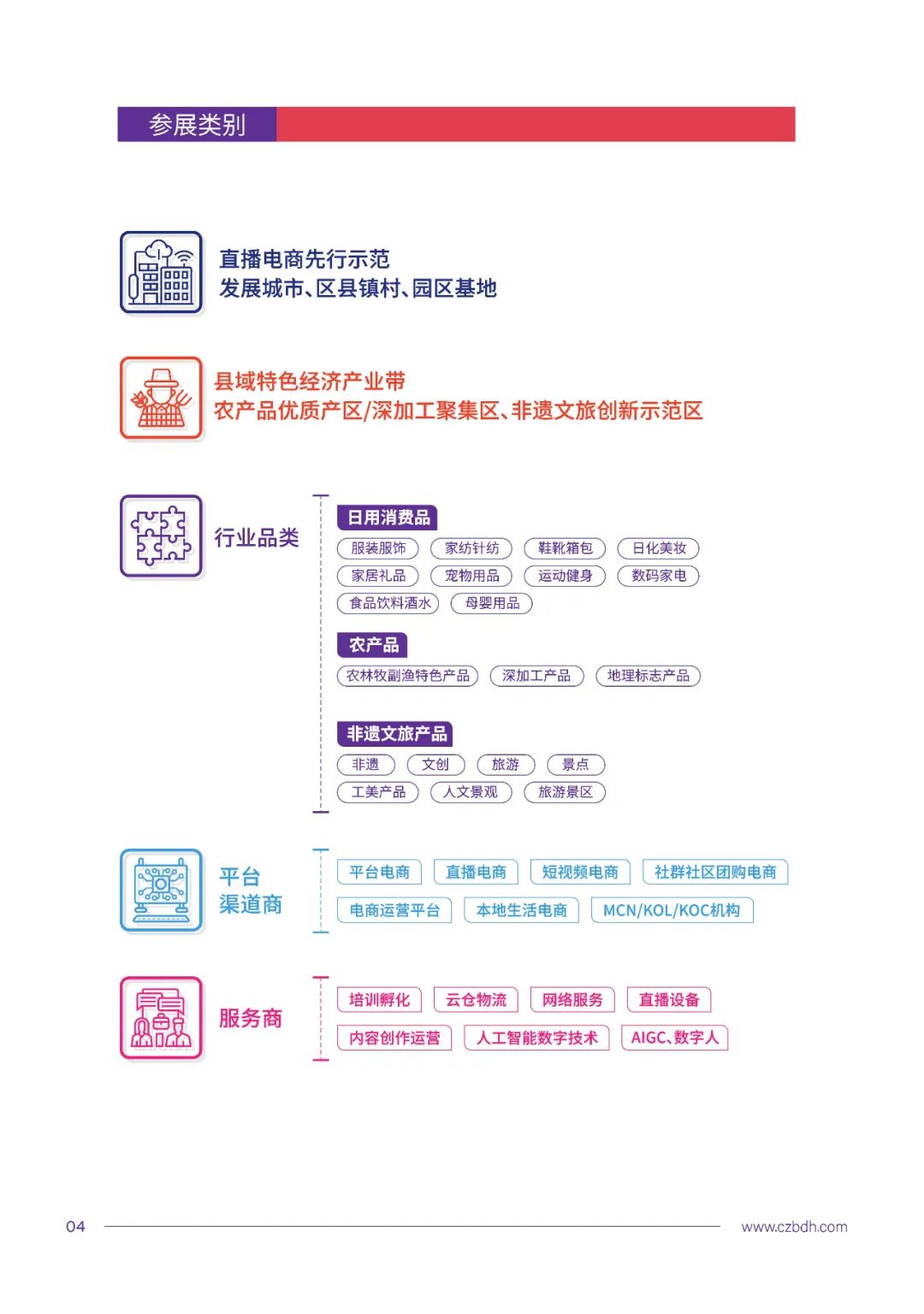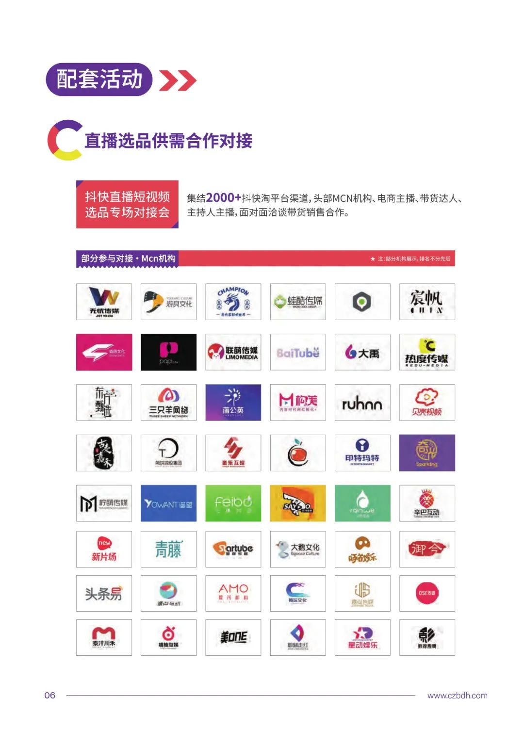 作为大会重要活动之一,中国直播电商选品交易博览会规模将达10万平方米,设立先行示范发展成果、赋能县域特色经济发展、助力新时代乡村振兴、促进非遗文旅创新发展、引领时尚价值消费以及供应链、产业端、服务端品牌展区八大主题展区。精选2000+产业带、集聚区优质品牌,邀请30000+直播平台、基地园区、MCN机构、头部主播、联盟团长、带货达人与会直播选品带货合作洽谈。接下来,大会将在各方共同参与和助力下,将中国直播电商产业大会培育成为直播电商领域最大规模、最具影响、“四季如春”的品牌盛会,共同推动我国直播电商产业规范、创新高质量发展,为我国经济转型与数字化提质升级发展以及助力乡村振兴提供新动能、新引擎。