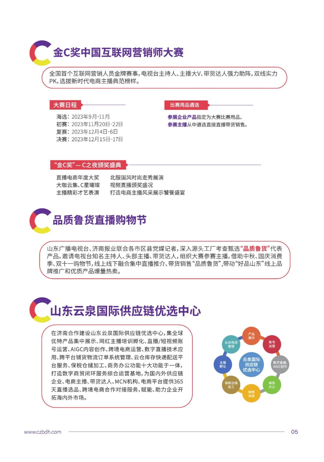 全国首个10万+规模“金C奖中国互联网营销师大赛”,培育正能量网红主播新人,明星网红大咖云集助阵,抖音、快手、淘宝主流平台鼎力合作,带动超5亿消费粉丝关注分享。