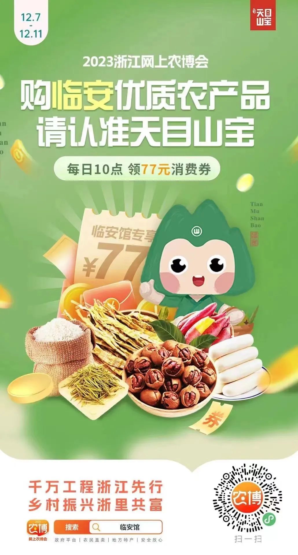 以“购临安优质农产品 请认准天目山宝”为主题的2023浙江农业博览会网上农博临安馆专场活动于12月7日同步拉开帷幕。