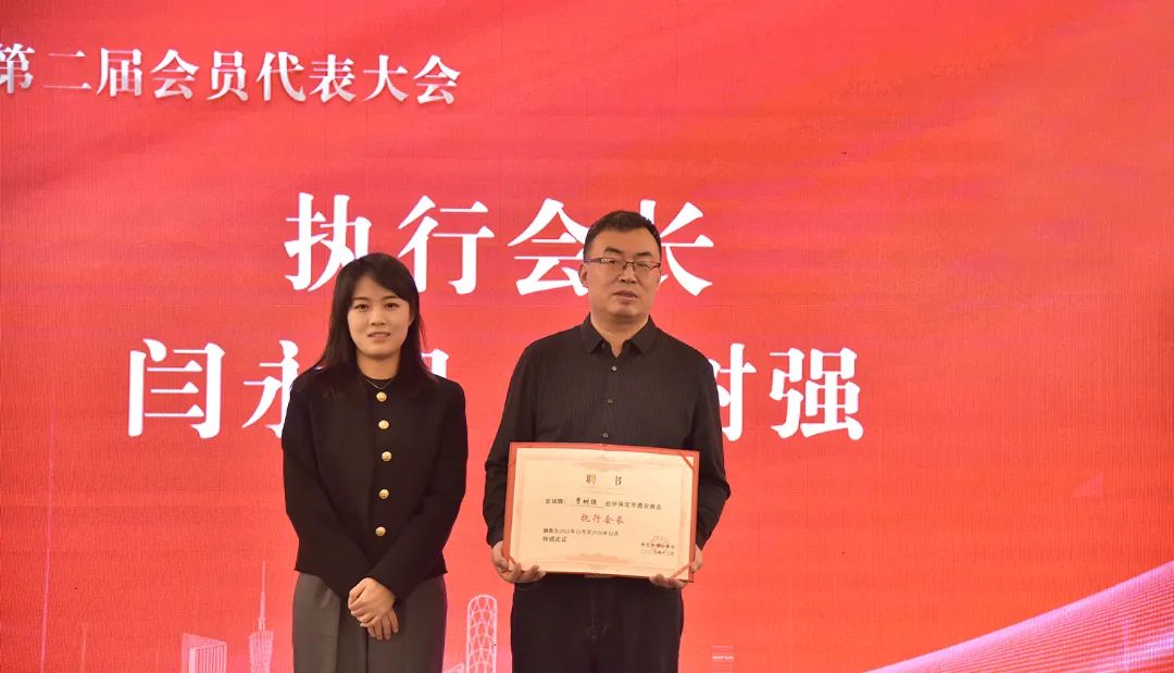 ▲保定市民政局社会组织管理处处长刘亮为李鑫颁发“会长”聘书
