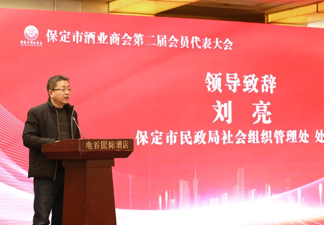 保定市民政局社会组织管理处处长刘亮对保定市酒业商会新当选的领导班子表示热烈祝贺,并对新一届商会的工作提出了具体的要求。希望商会在新一届理事会的领导下进一步深化会员服务、加强政治建设、发挥政企间桥梁纽带作用,谱写社会组织高质量发展的新篇章。