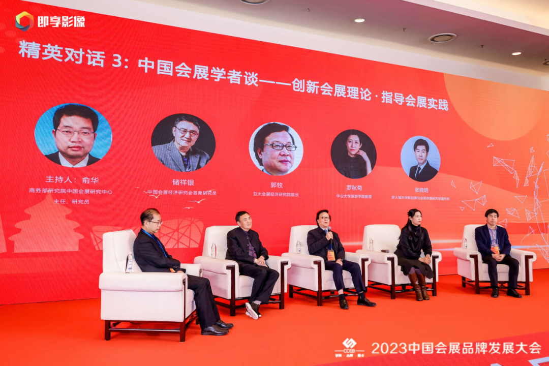 在精英对话环节,张晓明副教授作为国内知名的“生态会展”研究学者,与中国会展经济研究会首席研究员储祥银、亚太会展经济研究院院长郭牧、商务部研究院中国会展研究中心俞华、中山大学旅游学院罗秋菊教授一起参与“创新会展理论 指导会展实践”的内容分享。在发言中,张晓明老师主要结合会展业绿色发展与高质量发展背景重点阐述当前生态会展发展的主要着力点,呼吁会展业要高度重视资源整合,浓厚绿色搭建、绿色展装氛围。