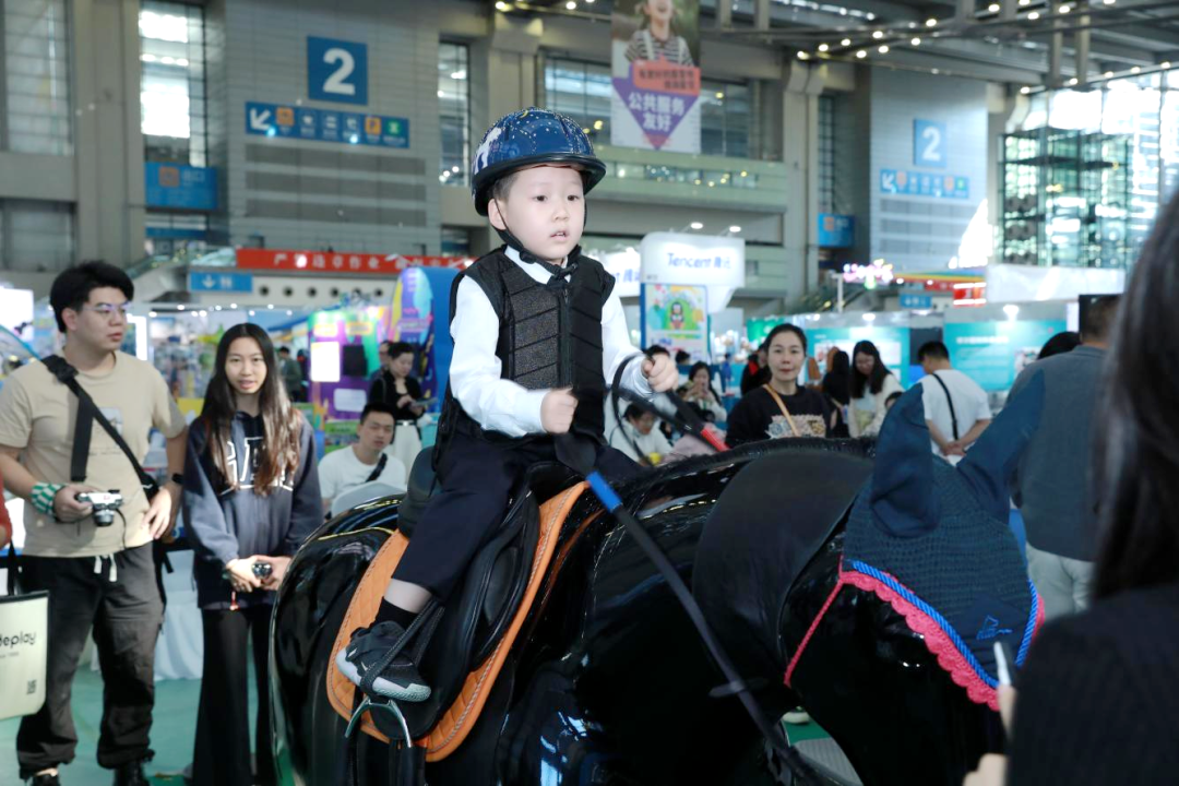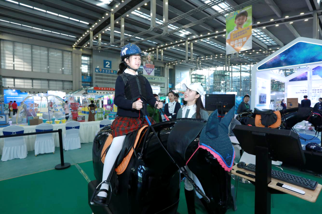 深圳市马术协会、深圳市金伯乐马术产业发展有限公司搭建科技模拟马体验展区,让现场儿童亲身体验马术运动,通过马术运动给予儿童心理上的积极关注和正向反馈,舒缓孩子情绪,增加专注力。