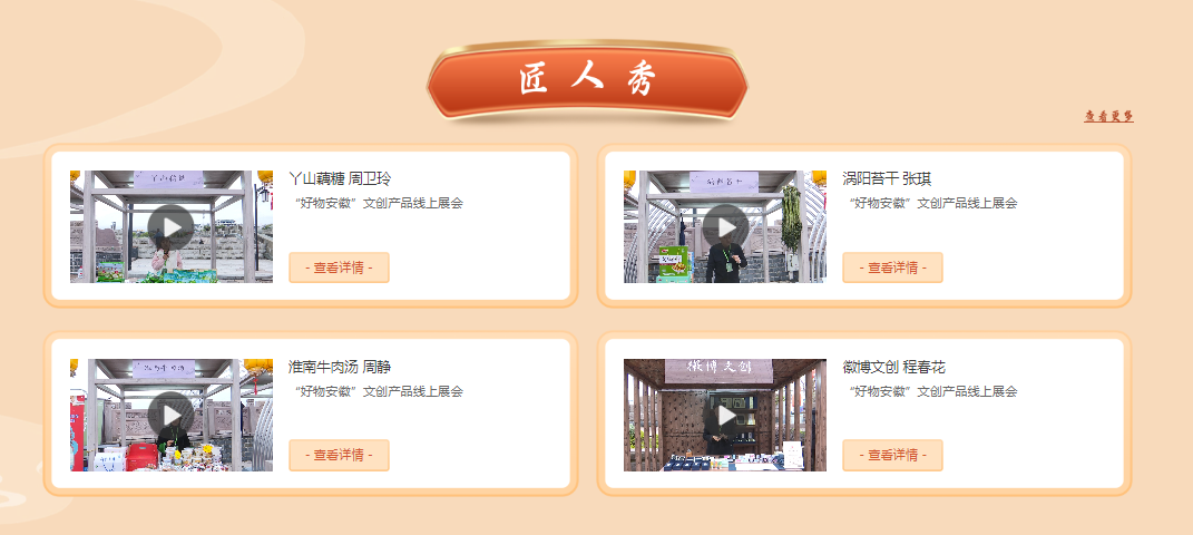 本次“好物安徽”文创线上展会展示了公共文化供需机构与产品、服务的具体信息。聚焦文创产品与服务,集中展示图片、文字简介、宣传短视频等内容,在服务理念、制度建设、供给模式上不断寻求突破,逐步提供适应高质量发展的新产品和新服务。