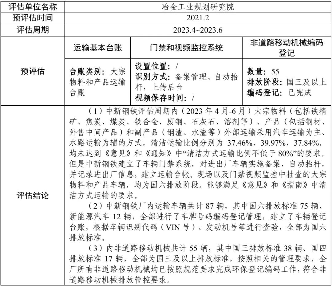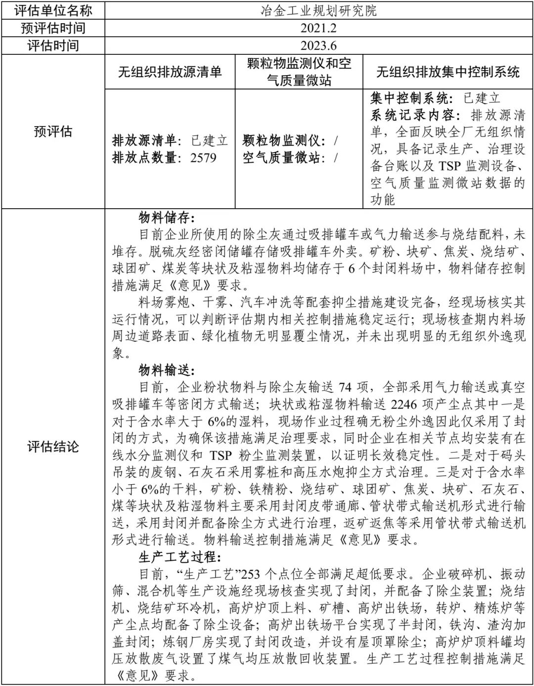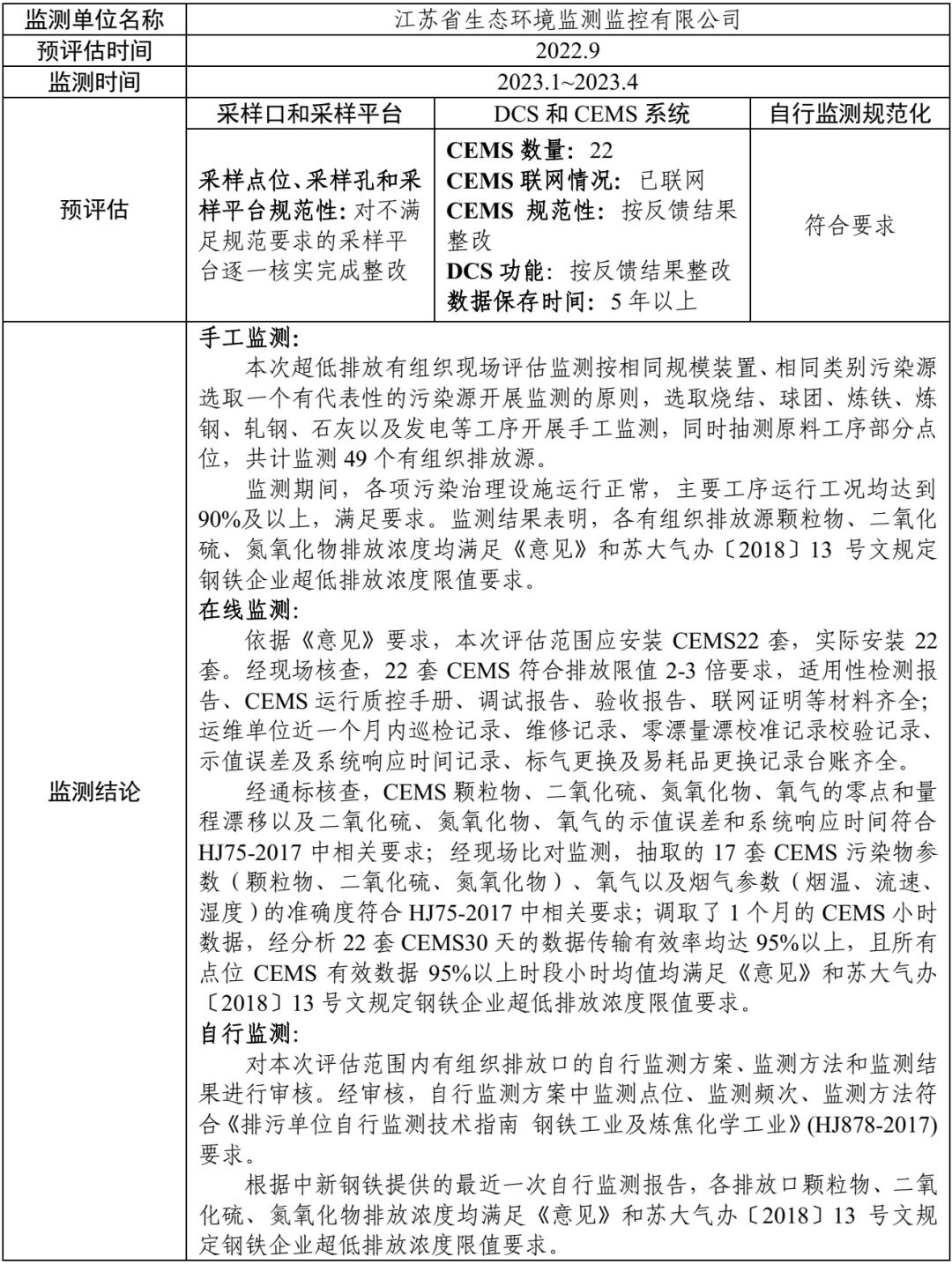 超低排放评估监测情况