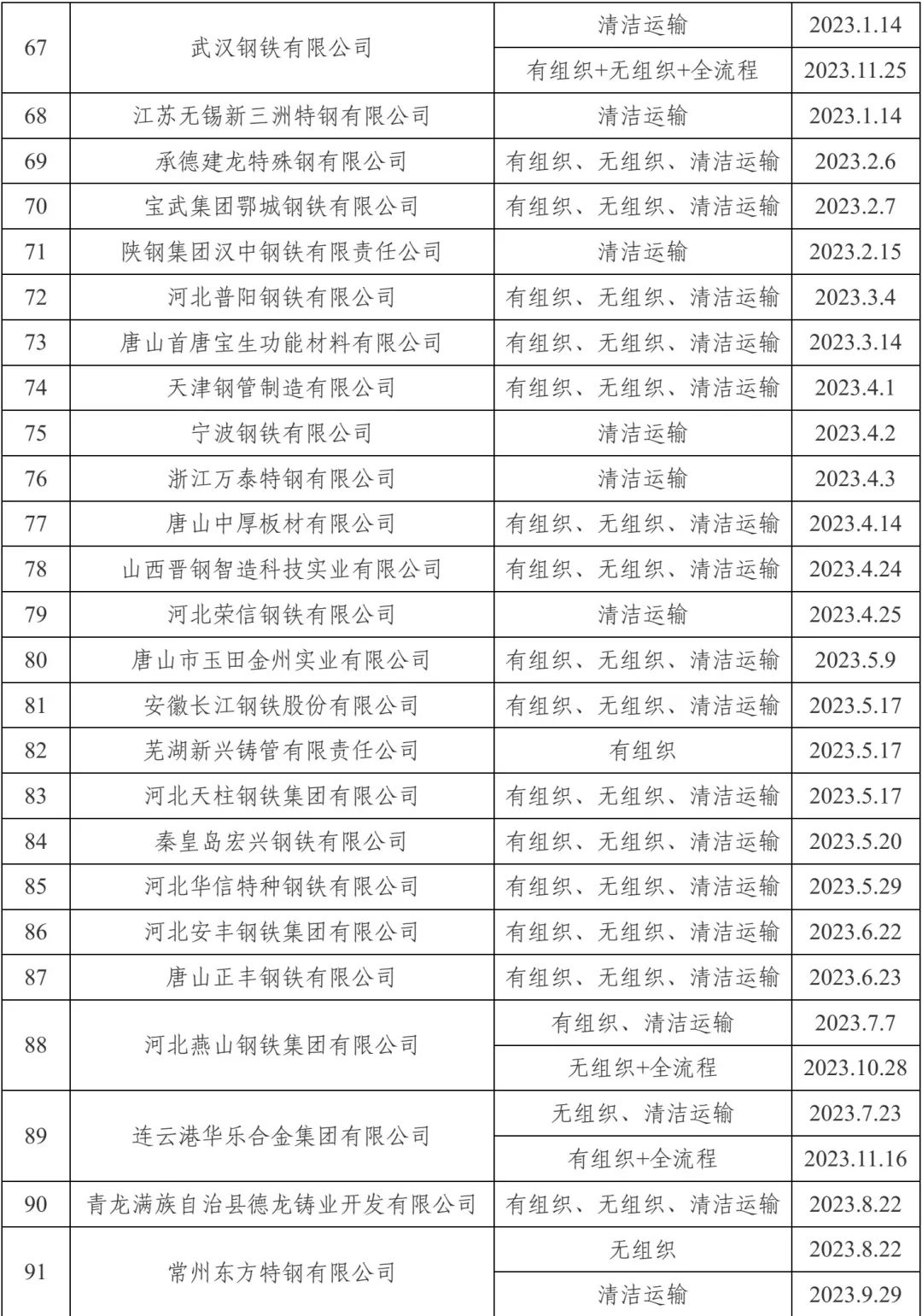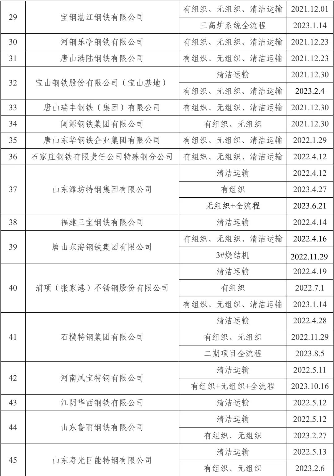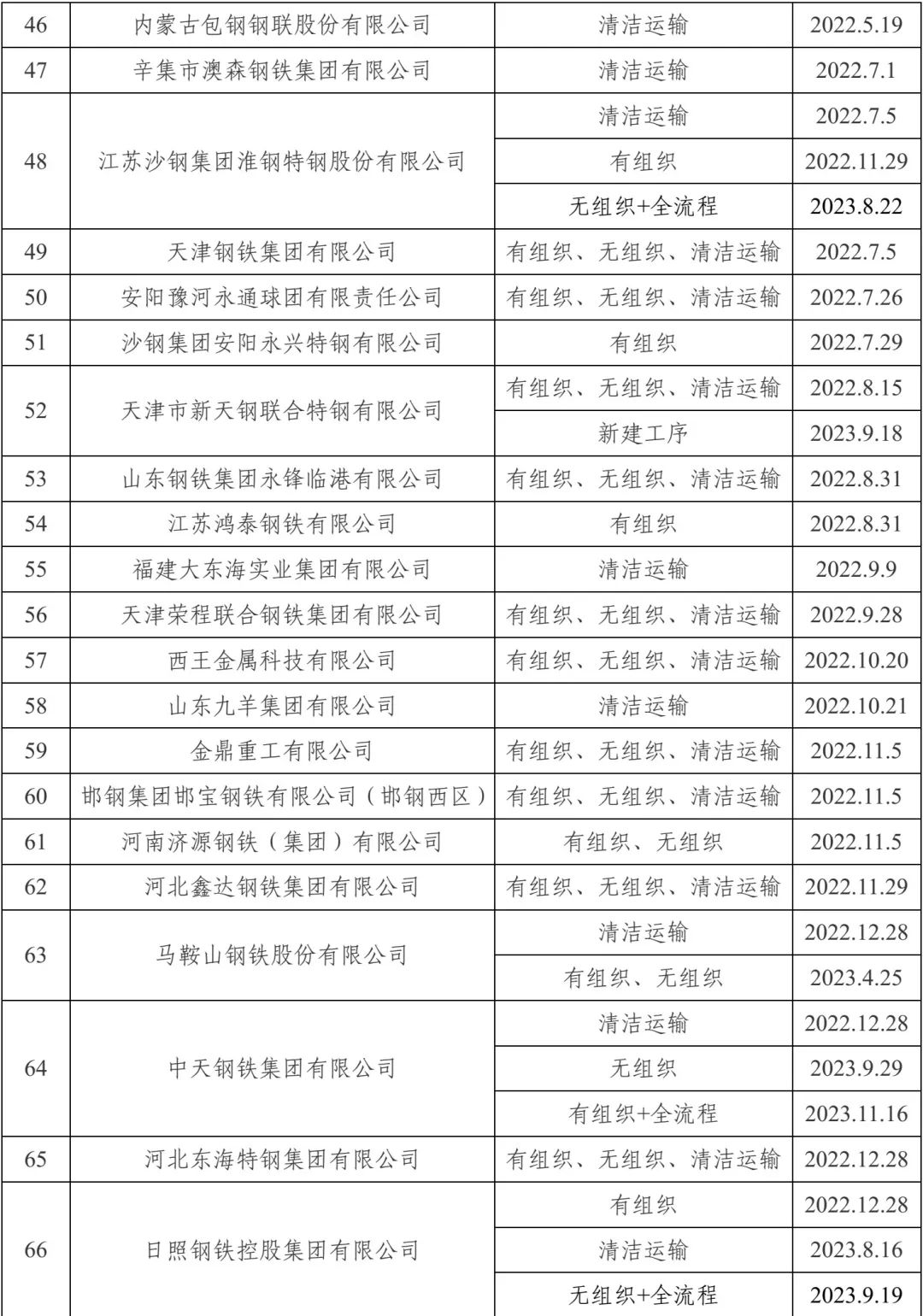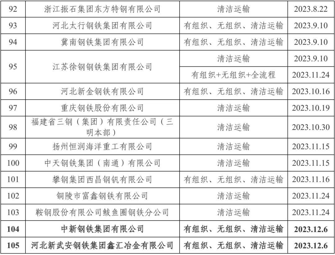 自2020年8月起,中国钢铁工业协会开展了钢铁企业超低排放改造和评估监测进展情况公示工作。截至目前,已有105家企业在钢协网站进行公示。近日新增中新钢铁有限公司有组织、无组织、清洁运输。至此,江苏已有12家全流程(包括之前公示的江苏沙钢集团有限公司、江苏永钢集团有限公司、江阴兴澄特种钢铁有限公司、常熟市龙腾特种钢有限公司、徐州金虹钢铁集团有限公司、浦项(张家港)不锈钢股份有限公司、江苏沙钢淮钢特钢股份有限公司、南京钢铁股份有限公司等8家),9家部份流程(包括之前公示的江苏长强钢铁有限公司、江阴华西钢铁有限公司、江苏鸿泰钢铁有限公司、江苏无锡新三洲特钢有限公司、常州东方特钢有限公司、扬州恒润海洋重工有限公司、中天钢铁集团(南通)有限公司等7家)通过公示。