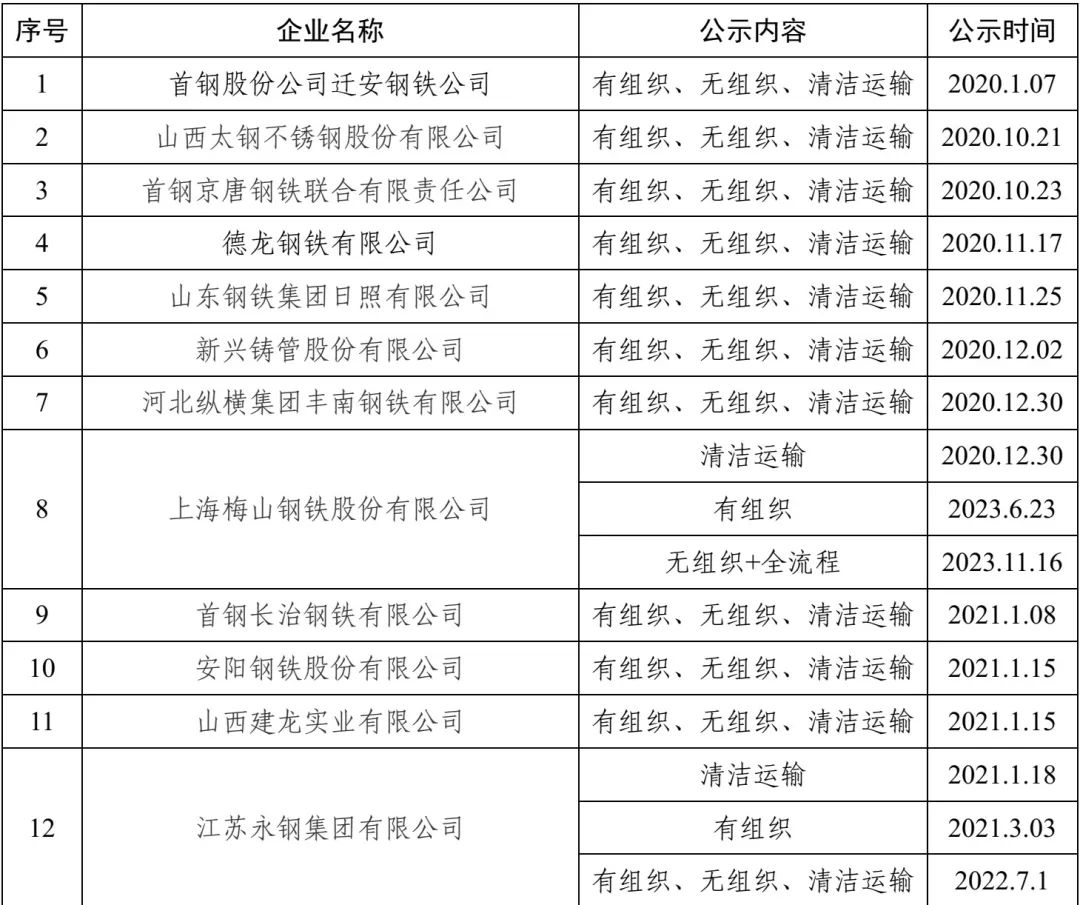 已公示企业名单汇总及各企业公示内容整理如下: