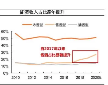 在未来5年,酱酒产能将突破80万千升,酱酒的销售收入将突破3000亿元,酱香已成为主流香型之一。