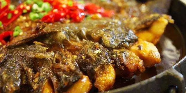 2.锅中倒入油,烧热后,将鲤鱼下锅,轮流煎至两面表皮金黄时,下入姜片、葱白段、辣椒煸香