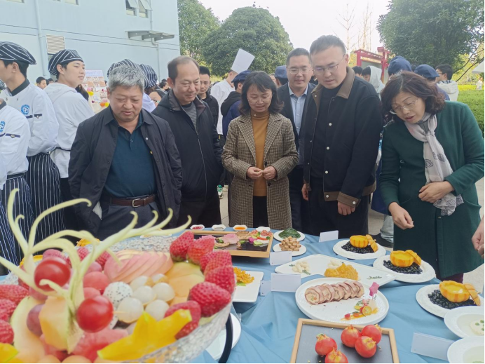 在布展期间,学校党委书记陈家全等校领导均先后亲临现场进行指导。学校领导与现场的专业老师、同学们围绕食材的选购、菜品制作、设计思路以及就业状况展开交流,对同学们在菜肴制作及创新上所体现的良好的专业素养与能力给予赞扬,激励同学们在今后的工作中要充分发挥自己在学校学习的专业技能优势,更好的服务社会和体现价值。