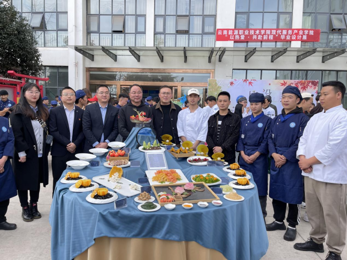 12月5日—6日,云南能源职业技术学院现代服务产业学院举办2021级学生毕业设计作品展,2021级烹饪工艺与营养、餐饮智能管理、食品智能加工技术、智慧健康养老服务与管理四个专业毕业生全部参与,分两天四组展出。内容涵盖了主题宴席设计、中西式宴会主题摆台、主题蛋糕台设计、老年活动策划展等方面。
