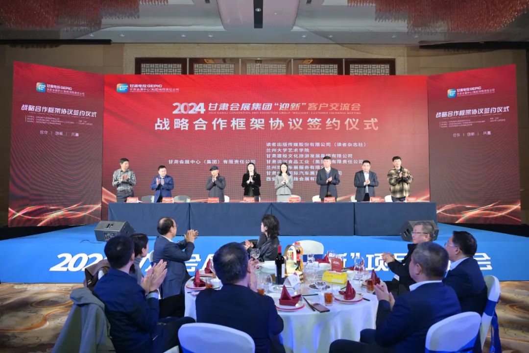 公司党委书记、董事长赵广欣做了热情洋溢的致辞,向莅临推介会的各位领导及嘉宾表示热烈欢迎,向长期以来关心和支持会展集团事业发展的社会各界人士及合作伙伴表示衷心感谢,并对会展集团未来发展愿景进行了介绍;党委副书记、总经理张红娣围绕公司基本情况、2024年重点项目各业态的发展优势及发展战略进行了全方位推介。为搭建合作共赢的广阔平台,甘肃会展集团在推介会上分别与读者出版传媒股份有限公司读者杂志社、兰州大学艺术学院、甘肃建投文化旅游发展集团有限公司、甘肃滨河食品工业集团有限责任公司、陕西省会展行业协会执行会长、西安旭峰丝路会展有限公司、兰州新域车展服务有限公司、甘肃优尚国际汽车展览有限公司等7家单位签订了战略合作协议。为答谢各方客户,公司还精心设计了趣味抽奖和文艺节目汇演环节,200余名嘉宾在轻松愉快的氛围中畅谈合作、共谋未来。