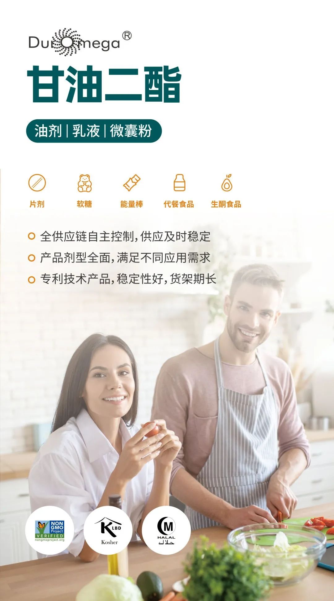 此外,DurOmega®甘油二酯和LocVita™焦磷酸铁(脂质铁)即将在国内首次亮相,这两款创新产品采用医诺自有的微囊专利技术,能够为客户提供更多样化的产品解决方案,满足不同客户群体的需求。