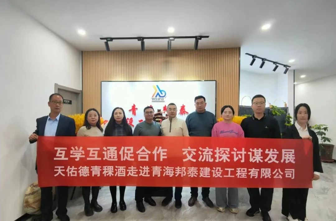 据悉,青海邦泰建设工程有限公司成立于 2019 年 1 月 3 日,是一家拥有房屋建筑工程施工总承包叁级、市政公用工程施工总承包叁级、 钢结构专业承包叁级的单位,注册资金 4000 万元。公司拥有各类专业技术人员 55 人,其中:高级职称 1 人、中级职称 6 人、二级建造师 9 人、初级职称 11 人、技工 30 人。公司具有与承包工程范围相适应的施工机械和质量检测设备。公司本着一切为用户服务的宗旨,自觉做到重合同、守信用,把企业效益和社会效益结合起来,进一步提高公司管理水平,强化企业内部管理,从而使公司各项管理制度及水平大大提高,并确保了工程建设的顺利进行。公司自创建以来,完成产值壹仟万元以上,积累了丰富的施工经验,掌握了各种新型的施工技术,得到了用户和社会的好评。座谈会上,李平总经理对天佑德青稞酒公司一行的到来表示热烈欢迎,并对其公司经营业务和近几年所取得的业绩等做了详细介绍。胡明海副主席对天佑德青稞酒的发展历程、企业文化理念、传统非遗酿造工艺以及社会谣言等方面做了详细的讲述和解答,并感谢青海邦泰建设工程有限公司的热情接待和交流沟通,邀请对方在适当的时候走进天佑德青稞酒直观感受青稞酒文化,祝愿对方在未来发展中越来越强劲、业绩越来越突出。天佑德青稞酒公司作为中国上市白酒企业之一,在此次“名酒进名企”系列活动中,向青海邦泰建设工程有限公司赠送了国之德真年份(5L装)纪念酒以供品鉴收藏,传递着天佑德青稞酒公司对自身品质的信心,以及与企业开展深度合作的诚意。天佑德青稞酒公司“名酒进名企”系列活动已开展了四百多场次,这一活动搭建起了一座天佑德青稞酒公司与各大名企跨行业合作的坚实桥梁,这也是践行“走出去”发展战略的重要举措之一。未来,天佑德青稞酒公司将继续深化与各大企业间的合作,推动跨行业融合发展,为打造百年企业再添动力! 撰稿丨沙生海
