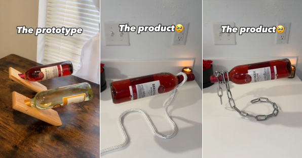 视频来自账号@lift.luxe,模拟成麻绳、锁链等物品的酒架像被施展了悬浮魔法,这款具备极强社交属性的短视频获得了380万点赞。