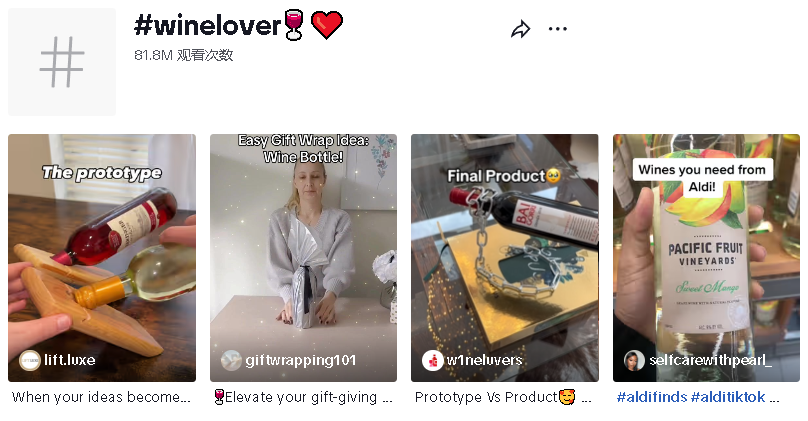 12月是各种酒类产品热销的节点,话题标签 #winelover 有超8000万的浏览量。极具创意的酒架、开酒器、酒杯都有机会成为爆款的社交单品,短视频社交媒体极强的传播能力也为此类产品带来爆单的信号。