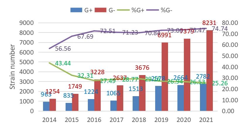 图2 2014年至2021年中国主要耐药菌流行趋势