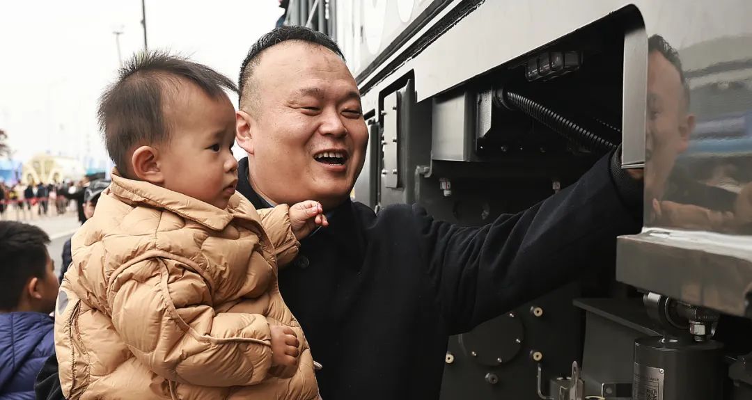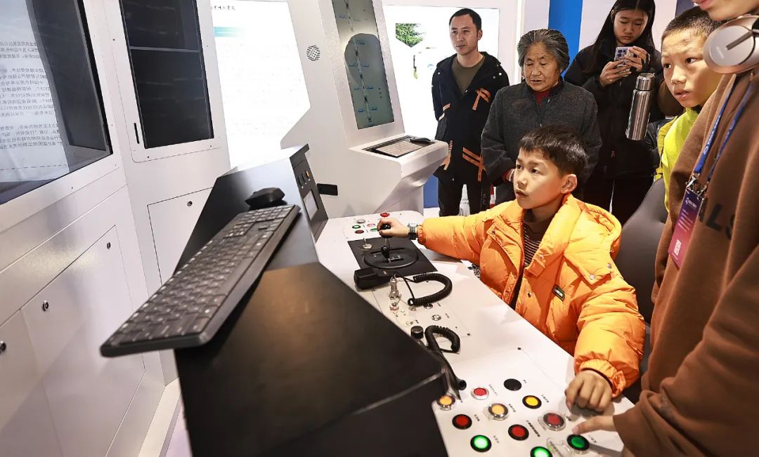 12月9日,今天是2023中国国际轨道交通和装备产业博览会的第一个开放日,现场人潮涌动,人山人海,无论是室外展区,还是室内展区,我们的非专业观众都显现出非常高的专业水准。他们要钻到车下去看车轮,看机车转向架;他们要亲手去体验高铁列车,智轨列车的驾驭快感;他们所这个旅游列车的观景窗口还要更大些。这个车里面能有网络给我们打游戏吗。真的下不得地,不愧为中国电力机车之都的人。
