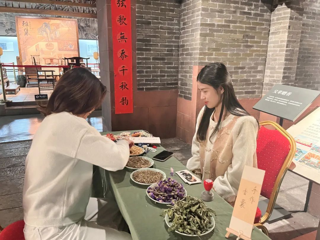 在这里,每一寸空间都充满了故事。篆香,让你观赏到香的曼妙形态;点茶,带你领略到宋人的生活美学;投壶,让您感受到古代宴席中的雅趣;制作香囊,让您品闻到香料的独特香味。