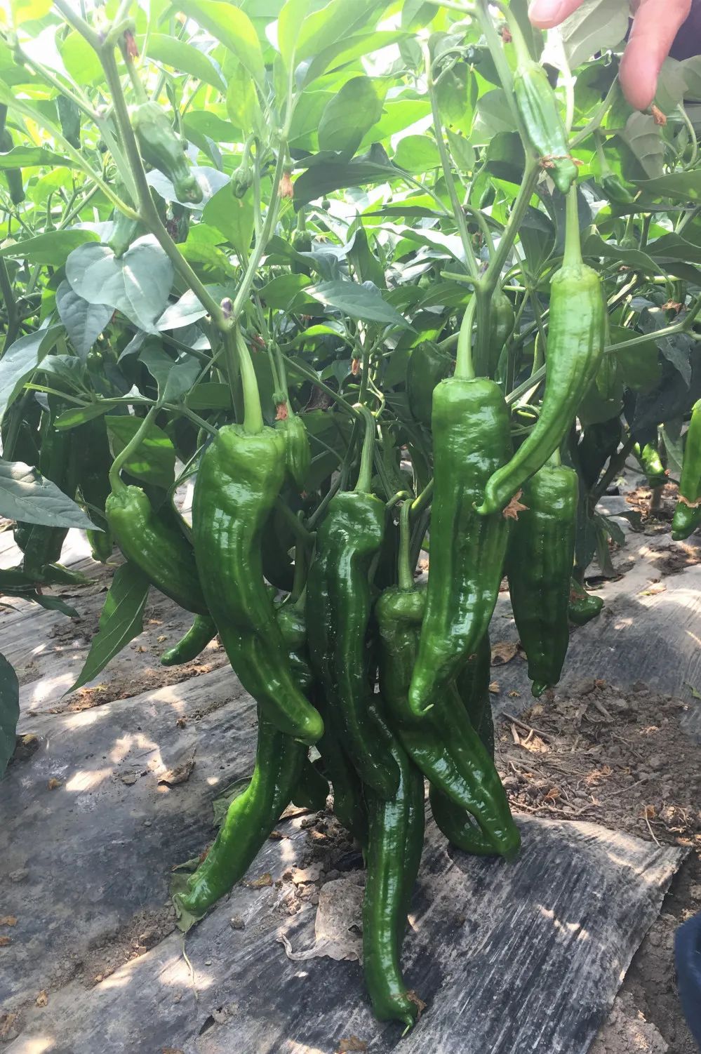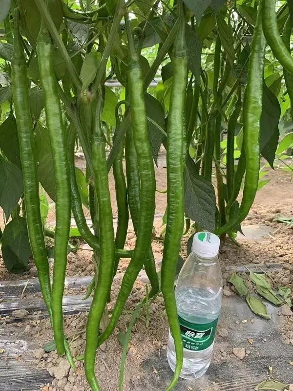 早熟,杂交一代,特大果,粗长牛角椒,株型紧凑,果长22-30厘米,横径6厘米左右,青果绿色,果皮略薄,微辣,果型美观,商品性特佳,膨果速度特快,抗病、抗逆性强,产量高,一般亩产鲜椒可达6000公斤,适宜作春秋保护地、南方露地及高山反季节栽培。