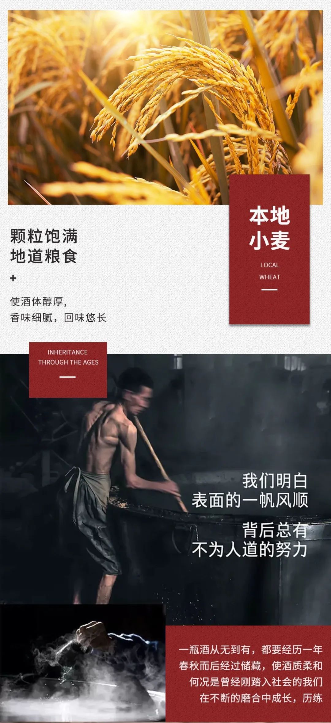 答:我们的酒中所有的味道和香味都是通过粮食发酵而来的,在生产和过程中不添加任何人工合成物质,它的所有味道都由糯高粱、小麦和水组合而来。
