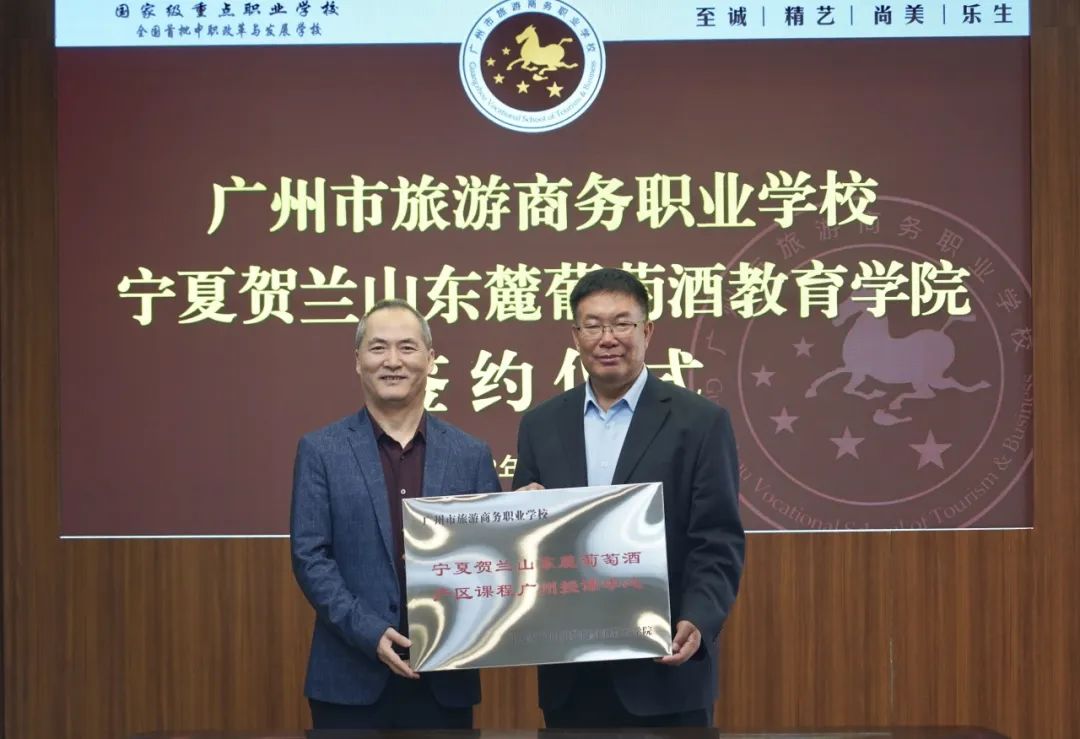 2023年11月28日上午,我校与宁夏贺兰山东麓葡萄酒教育学院战略合作框架协议签约仪式顺利举行,张立波校长与宁夏贺兰山东麓葡萄酒产业园区管委会主任助理、宁夏贺兰山东麓葡萄酒教育学院马永明院长正式签订战略合作框架协议。同时,教育学院向我校授予宁夏贺兰山东麓葡萄酒产区课程广州授课中心牌匾,授权我校作为广东省职业院校唯一合作伙伴。
