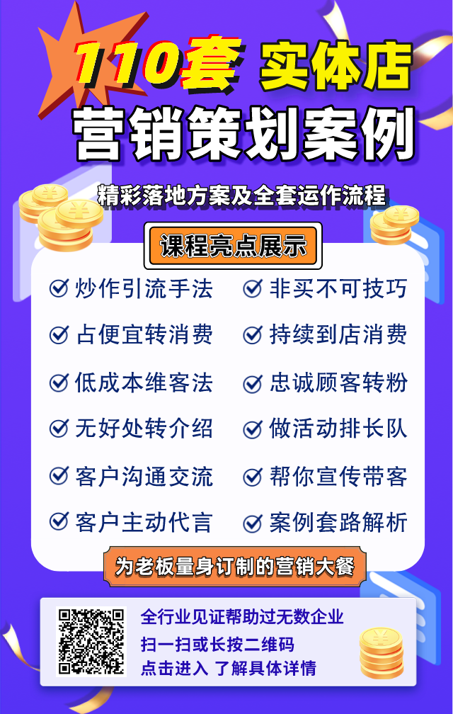当然,这里举的活动(行业)案例只是很少一部分的方法,我的专栏里还有更多的关于实体店经营的策略、机会以及“套路”。并总结了上百个现在最前沿的赚钱行业以及新门类。如果你感兴趣,可以点击查阅有没有适合你的项目。