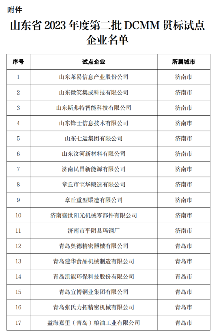 附件:山东省2023年度第二批DCMM贯标试点企业公示名单.pdf
